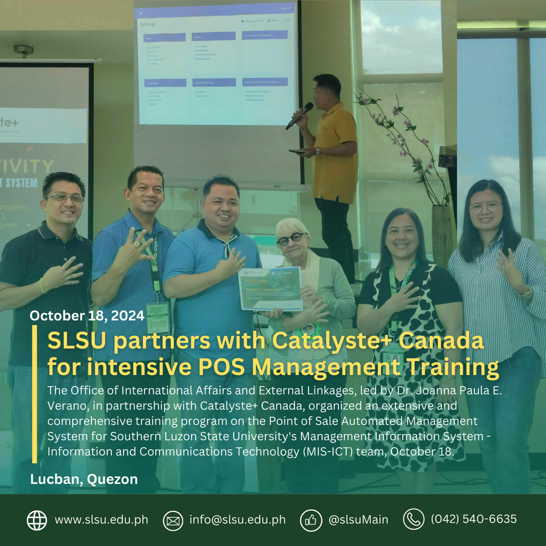 The Office of International Affairs and External Linkages, led by Dr. Joanna Paula E. Verano, in partnership with Catalyste+ Canada, organized a extensive comprehensive training program on Point of Sale Automated Management System for the University's Management Information System - Information and Communications Technology (MIS-ICT) team.